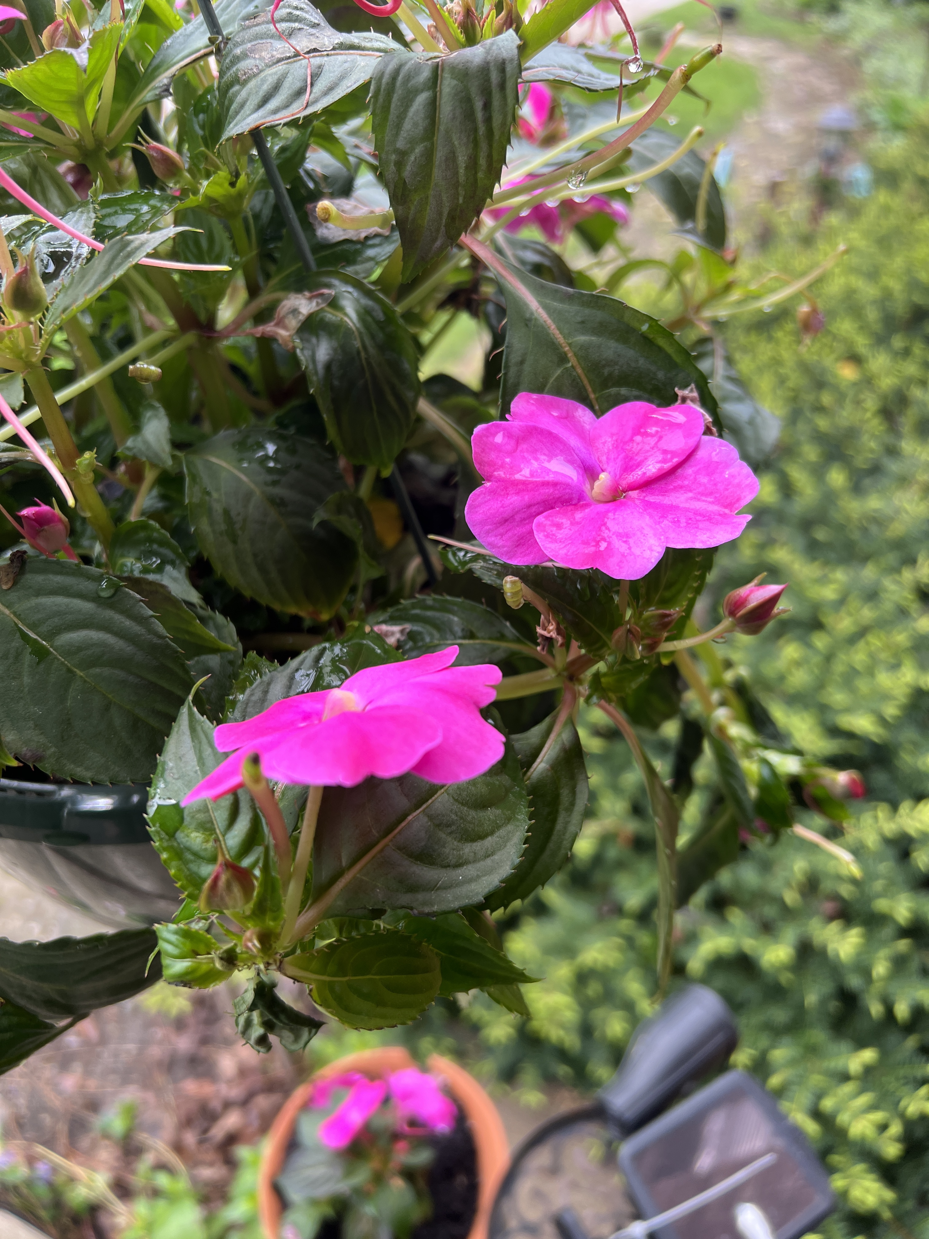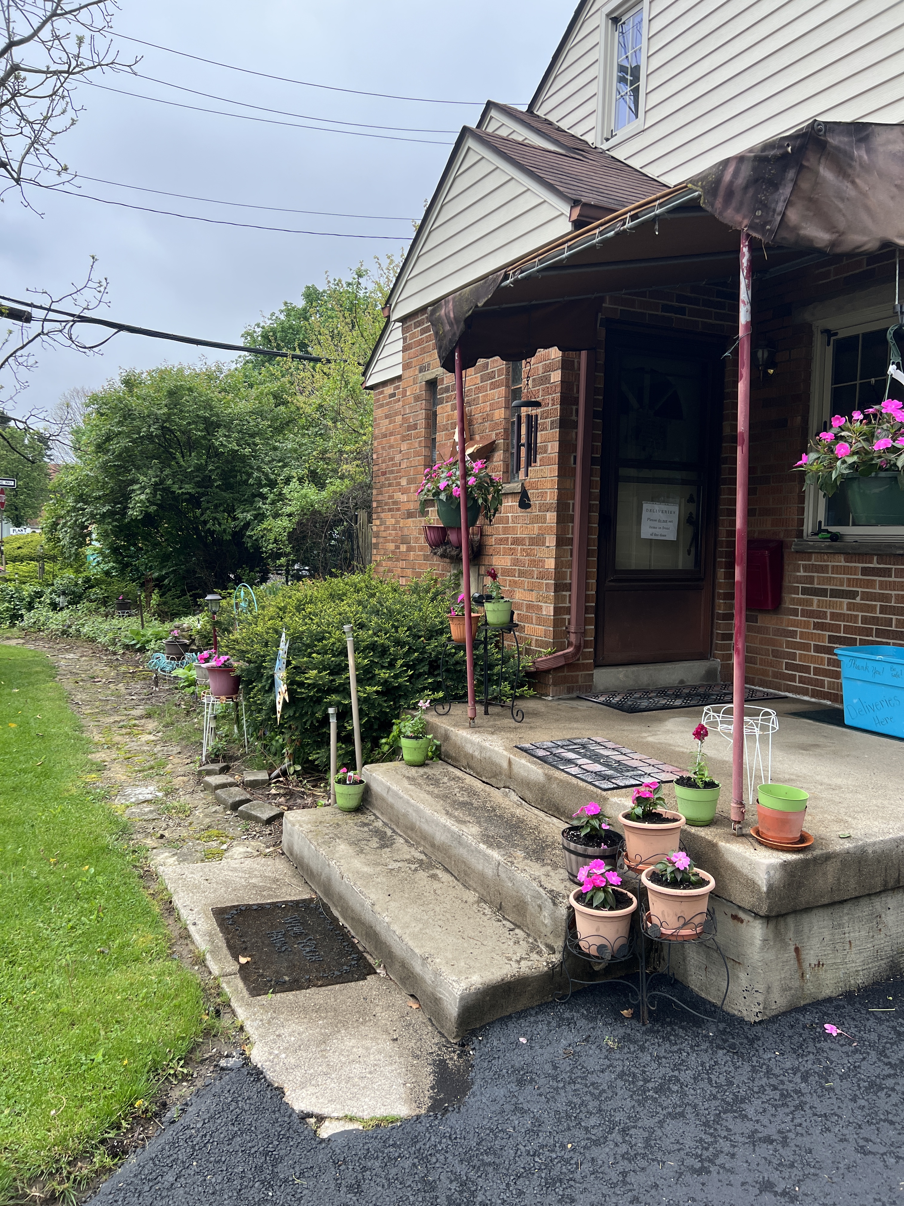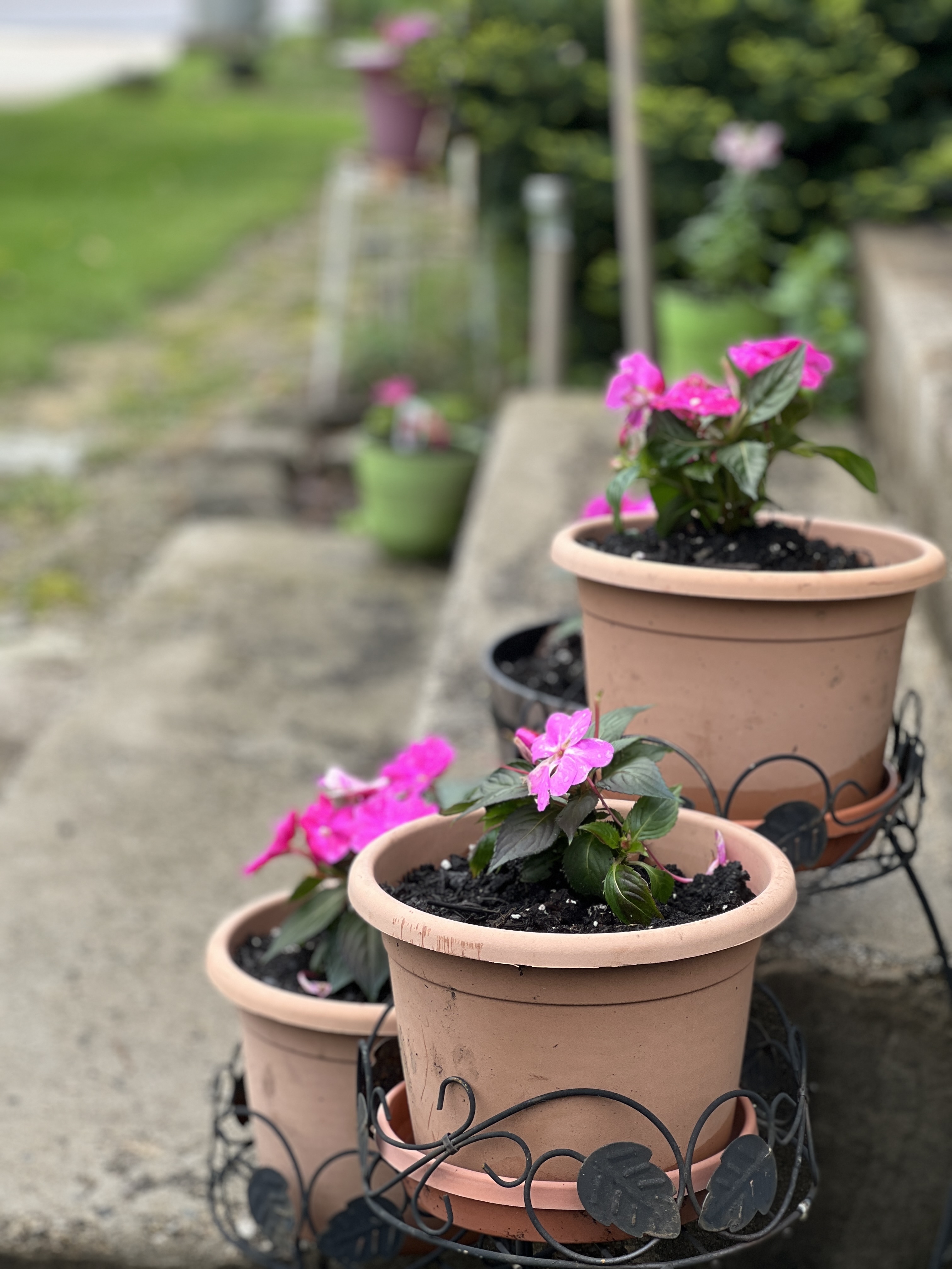 Returning home by 7:00 PM, I knew I had a 45-minute window to plant the pink impatiens I purchased from Fairmont Industries, the next door plant sale that is a fund raising program to assist high school students with special needs. I’ve always purchased the bulk of my annual plantings from Fairmont Industries since 2004 after moving to Shroyer Road in 2003. My bags o’ dirt had arrived from Walmart and I used the side of the porch by the driveway as my planting station. Just as I was wrapping up, the next wave of downpours came through. I was drenched but did not mind. Within a few hours I had enjoyed digging in dirt and walking through rain.