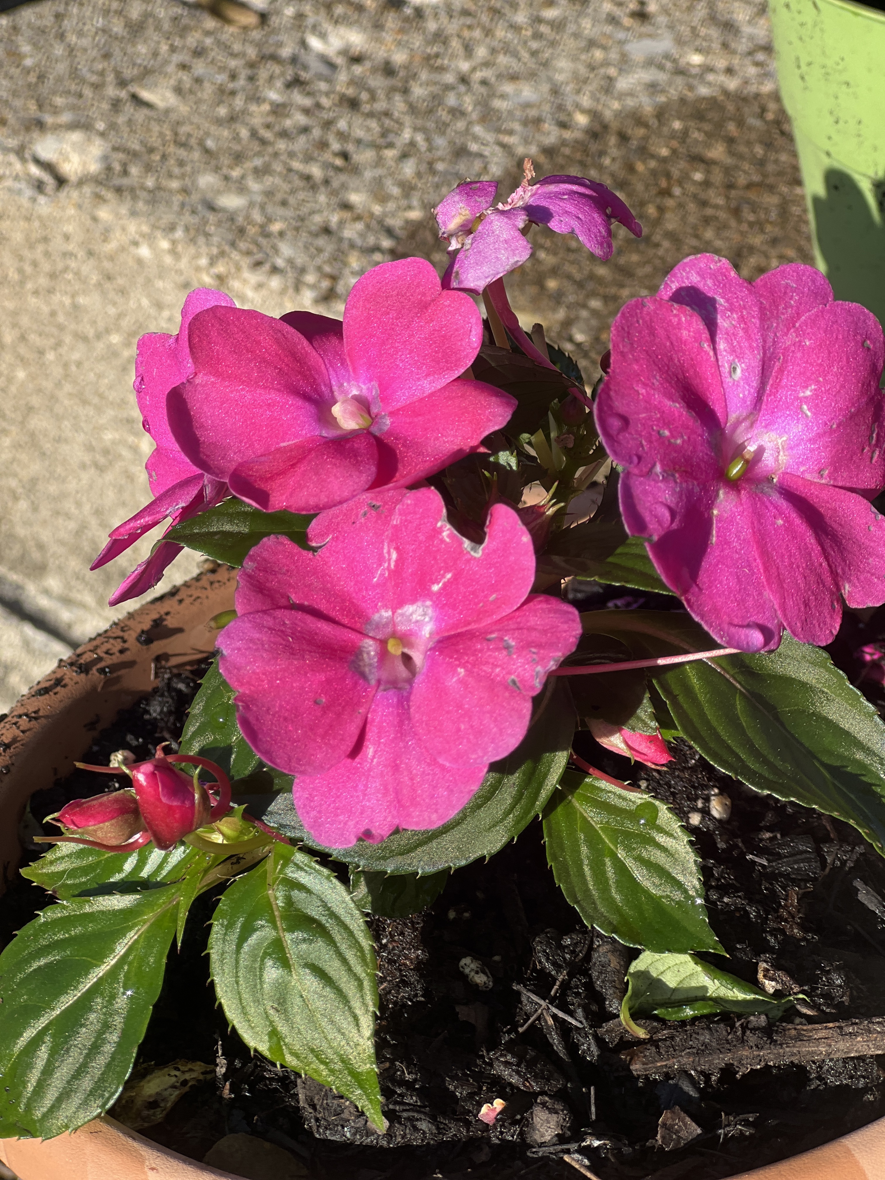 This Monday morning was stunning at 6:45 AM as the sun burst over the roofs and treetops. The Quartet had some additional deck time and were only eager to come in because they sensed I was ready to depart. With some extra time before Bus No. 17’s arrival, the front yard’s flowers got a healthy watering.