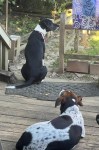 The cardinal is bellowing away his morning cantering song. The breeze is in Oscar Hammerstein II mode. It’s 70 degrees. The Quartet is animated and well into its morning routine. And, I am on the deck to work.