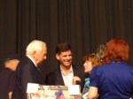 Mr. McCullough gave a warm, heartfelt speech to the enormous population gathered in Kettering Middle School’s auditorium. He also read some excerpts from his book. He was presented a number of tributes from the Dayton community which included presenters, Amanda Wright Lane and Stephen Wright, the great-grand niece and nephew of The Wright Brothers, and Brady Kress, President & CEO of Carillon Historical Park.