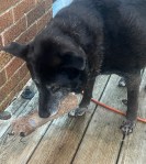 Now, at 8:15 AM, she and Chief are in identical profiles as they nap on the deck. She’s been playing with “Baby” and giving me her regular greetings while I have worked from the deck table.