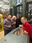 PHOTOS: a) Rick & Jane Schwartz, Sarah Kress, Brady Kress; b) Saturday’s Roundhouse Cafe team with Hank, Emma, Steve, and Sarah; c) Sarah and I with the Tree of Light; d) Bailey snuggling on my neck