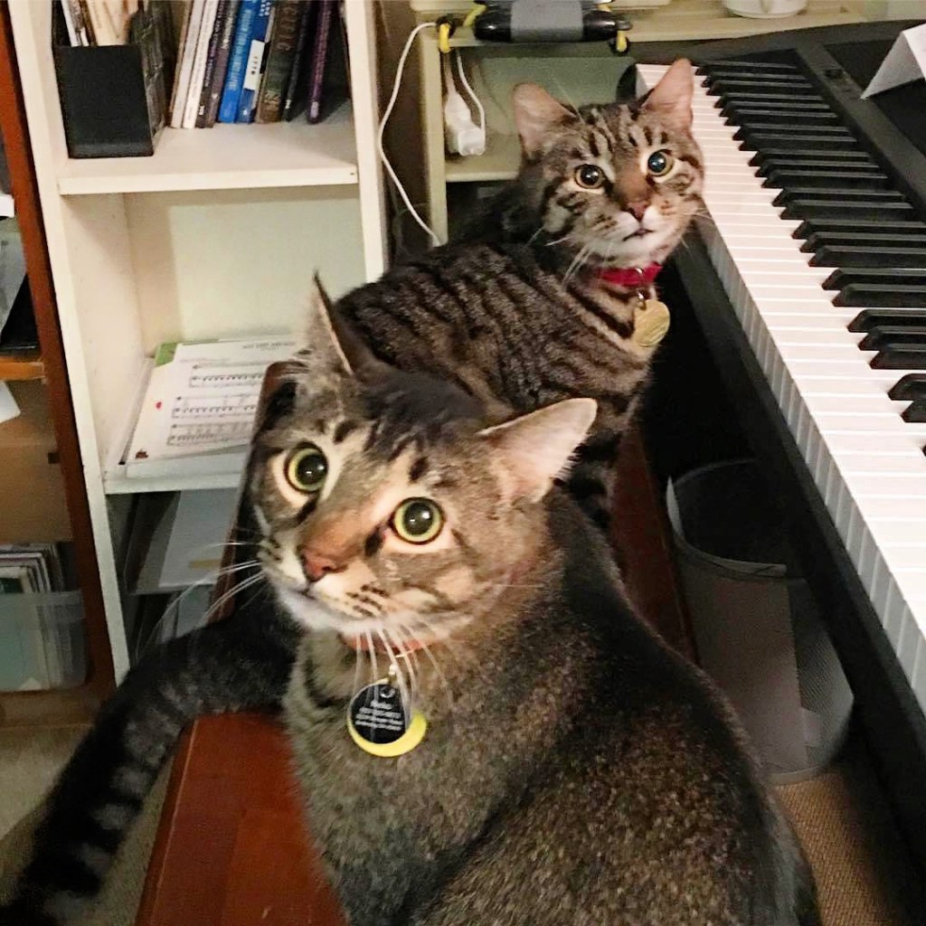 PHOTOS: 1. Stinky the stink bug; 2. Bailey showing off her heart as she naps; 3. Chief and Bailey; 4. 2018: Clyde and Neko: since Clyde was always playing the piano, he must have been giving Neko a lesson.
