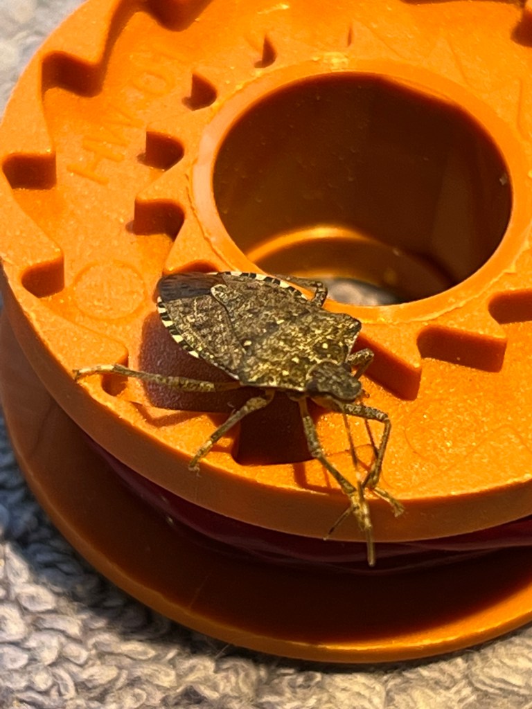 I have a resident stinkbug that keeps me company in my study. He usually perches himself on top of one of my three monitors as I work. Stinky never lands on me or bothers me in any way but I find it amusing that, aside from the four pooches, I have a possum and a stinkbug. Oh, well…