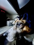 PHOTOS: A) Bailey woke up close to 3 AM and as she sat up, the one cover was still on her head. She stood like this for the longest time. B) The others.