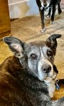 The Sisters, Bailey and Harrigan, are different than most dogs. At nine years, they’re still hyper and filled with tons of energy. I think they remain trim due to all the wiggling they do, especially Bailey. While they are devoted to one another, they are terribly territorial when it comes to me. If one is snuggling with me and the other approaches, there is growling and even the snarling of teeth. Bailey sleeps on my pillow with me or wedged into my chest. Harrigan stays at my knees or feet. However, if one moves, the other’s head pops up like the periscope of a submarine on a mission.