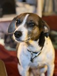 A thunderstorm rumbled through The Miami Valley and the four older dogs cowered in my study. Deeds continued playing and watching the other pooches.