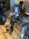 Col. Deeds spent a good deal of time kissing and loving on the others. Chief seemed to welcome the affection from his little shadow. Even Harrigan allowed him to smother her with kisses. The world has turned upside down!