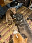 Earlier today, I took to my bed to relax and was joined by Bailey on my pillow while Harrigan and Deeds snuggled at the foot of the bed. I must say, I am so astonished and thrilled with how Harrigan has really stepped up to the plate to accept Deeds. I would never have guessed her to be so loving with him. Col. Deeds seems to adore her.