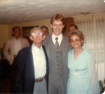 5. Graduation with my great-great uncle and aunt, Raymond and Betty Daugherty. Raymond was the younger brother of my great grandmother, Thelma Daugherty Barmes and the three-month-older uncle to my grandfather, Leroy Barmes. Aunt Betty was best friends with my grandmother, Donna Clary Barmes. Raymond and Betty had one son, Steve, who became a special cousin and friend.