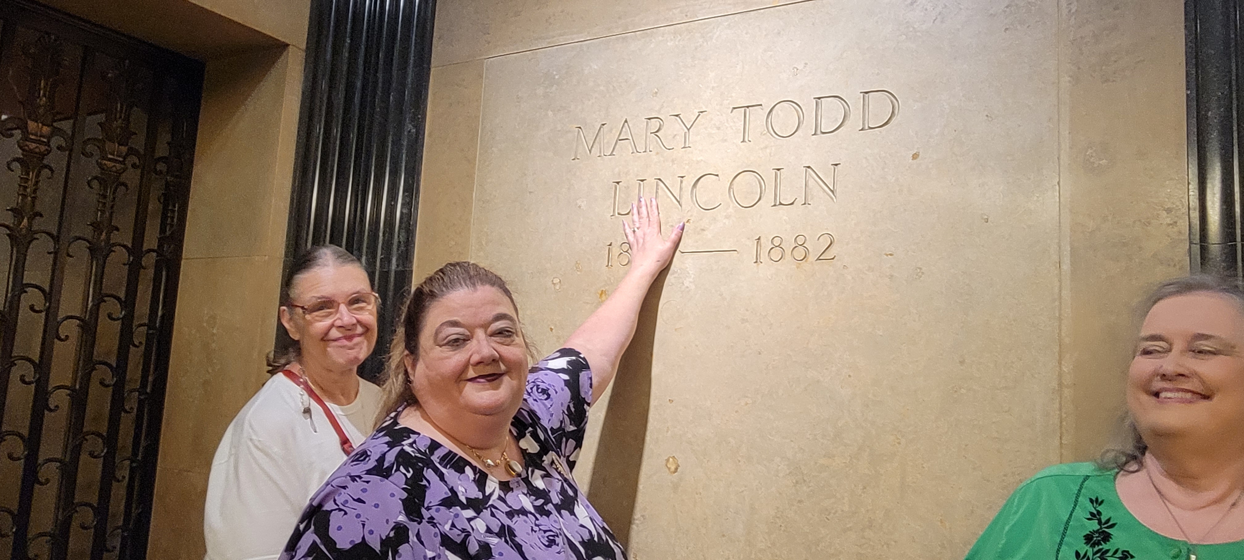 Since I could not attend the ceremony at the Lincoln Family Tomb in Oakridge Cemetery, I was represented with a “pat” on the section that supposedly fronts Mrs. Lincoln’s enclosed coffin.