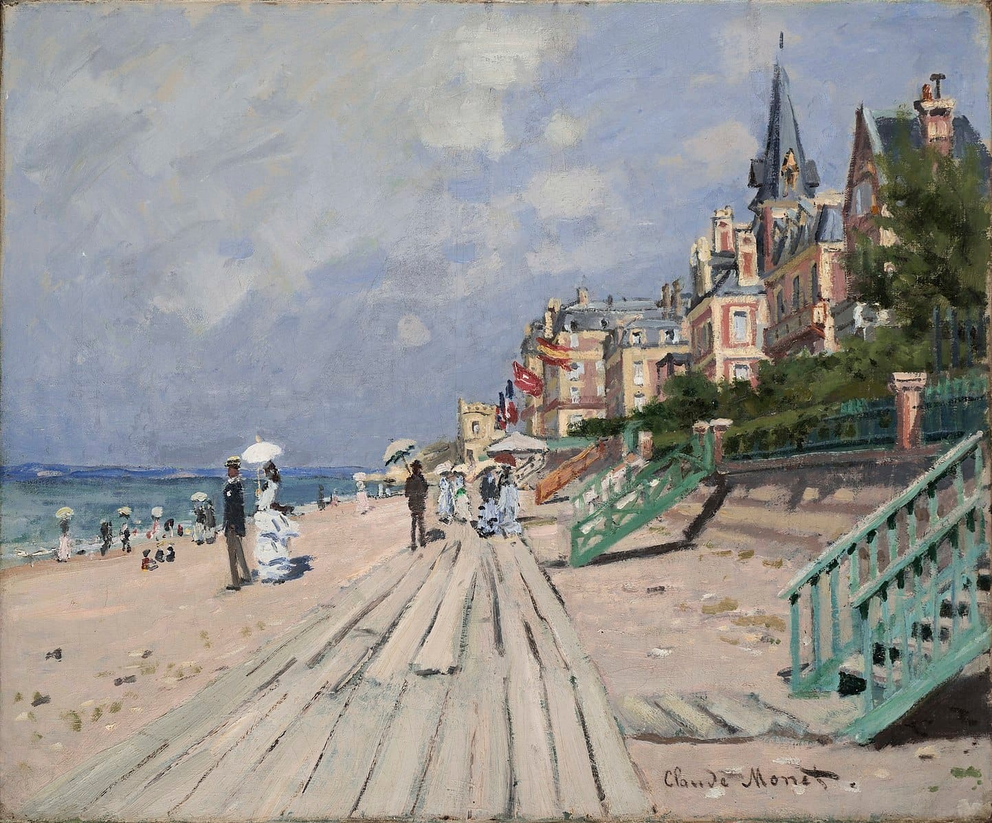 The Beach at Trouville (1870) by Claude Monet.