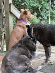 It’s moving in on 12:30 PM and I have been sitting on the deck for the past 20 minutes enjoying a terrific breeze and watching the pooches play on the deck.