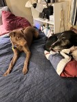 It’s 6:50 AM and I want to complete a few things before officially beginning my day. Colonel Deeds has made his rounds of inviting the others to play with no success. On the bed, Harrigan was relaxing against my pillow but The Colonel persisted.