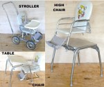 I easily found an image of something that was a part of my infancy and childhood. It was a unique structure but very practical. It was my high chair that also doubled as a stroller, and later as a table and chair. I still have the table. It’s not coming back to me whether or not it if the high chair part was still in use for my younger siblings. I still find it to be a remarkable item.