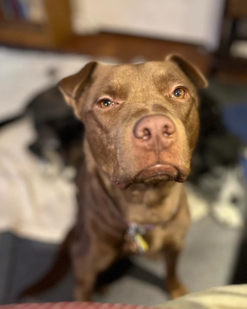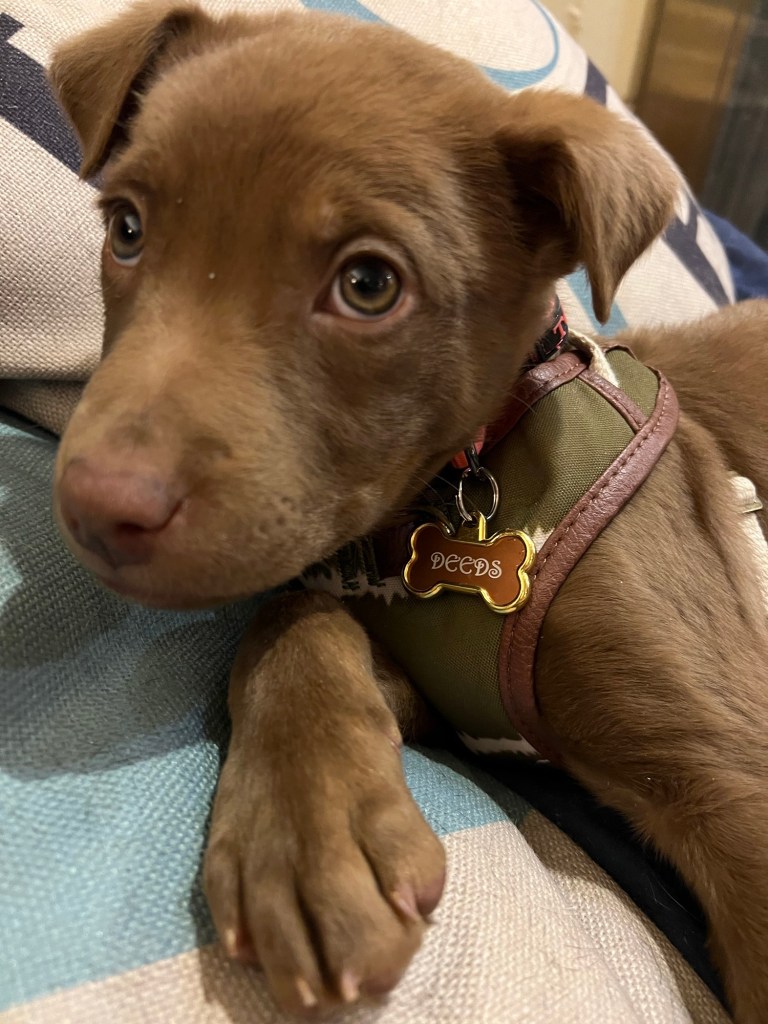 The Colonel is handsome, affectionate, devoted, playful, and an eager and natural photo-bomber. While still considered a pup, he is both rambunctious with high energy and extremely loving of all the other pooches.