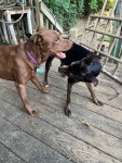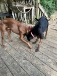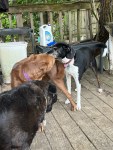 Colonel Deeds and Hoskins I’ve been playing pretty hard this morning, and even got the older two girls, Harrigan and Irma, playing with them. As usual, Chief is lounging next to me. Colonel Deeds did stop for a moment to lay beside Ch