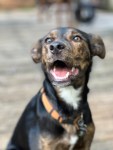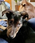 Hosky is a sweetheart of a little girl, full of energy but rather laid back. Every morning and periodically throughout the day, she and Colonel Deeds give the older dogs kisses and affection.