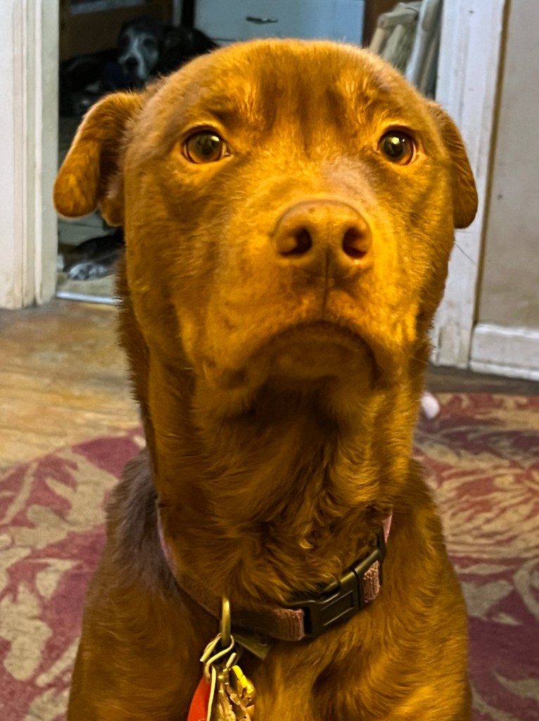 The Colonel is still a boy puppy at age 2, but the sweetest, most affectionate boy. He’s also a magnet for the camera.