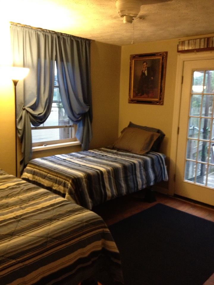 My former study is now a new guest bedroom with two twin beds, and the TV room. I figured that the room might service my second bedroom on those nights when it is terribly hot upstairs. And it will also serve as a second bedroom for those times when flyer can’t get up the stairs.