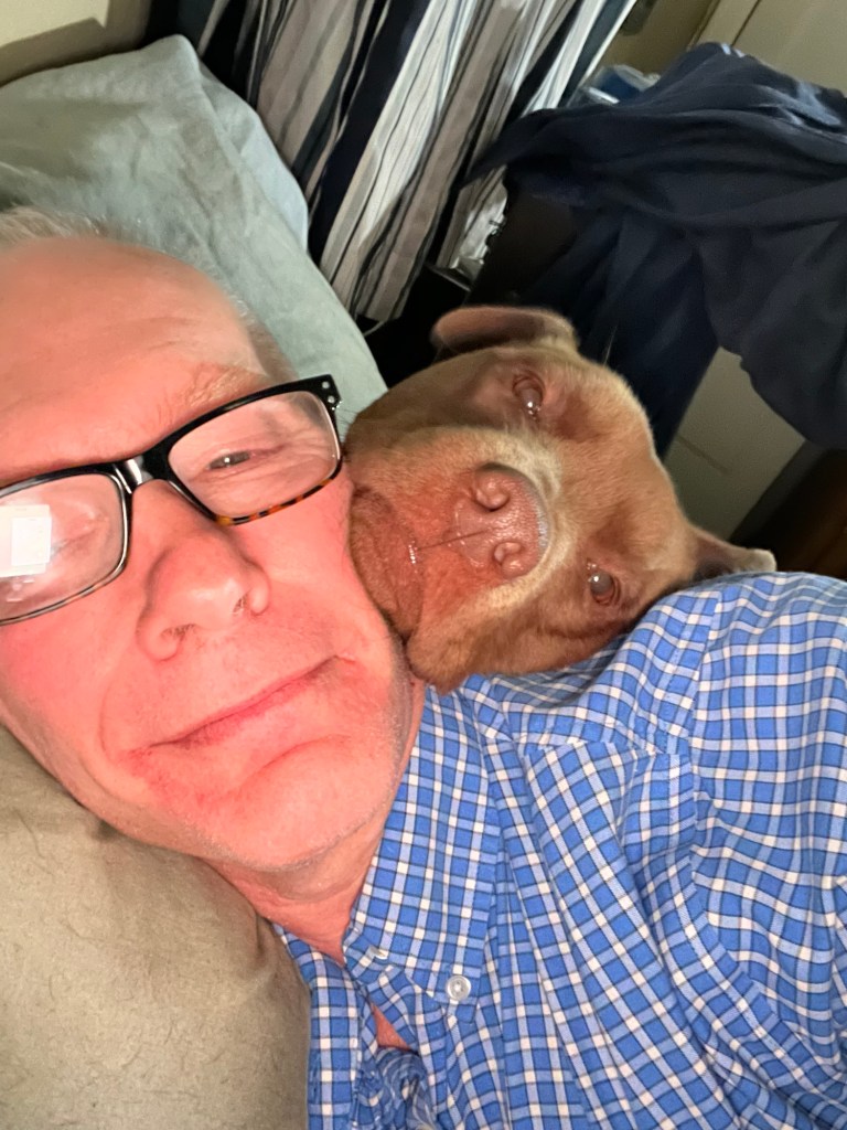 Lately, Colonel Deeds has been sleeping on the floor near Chief but bounds onto the bed at 5:50 AM without fail. His internal clock is impressive.